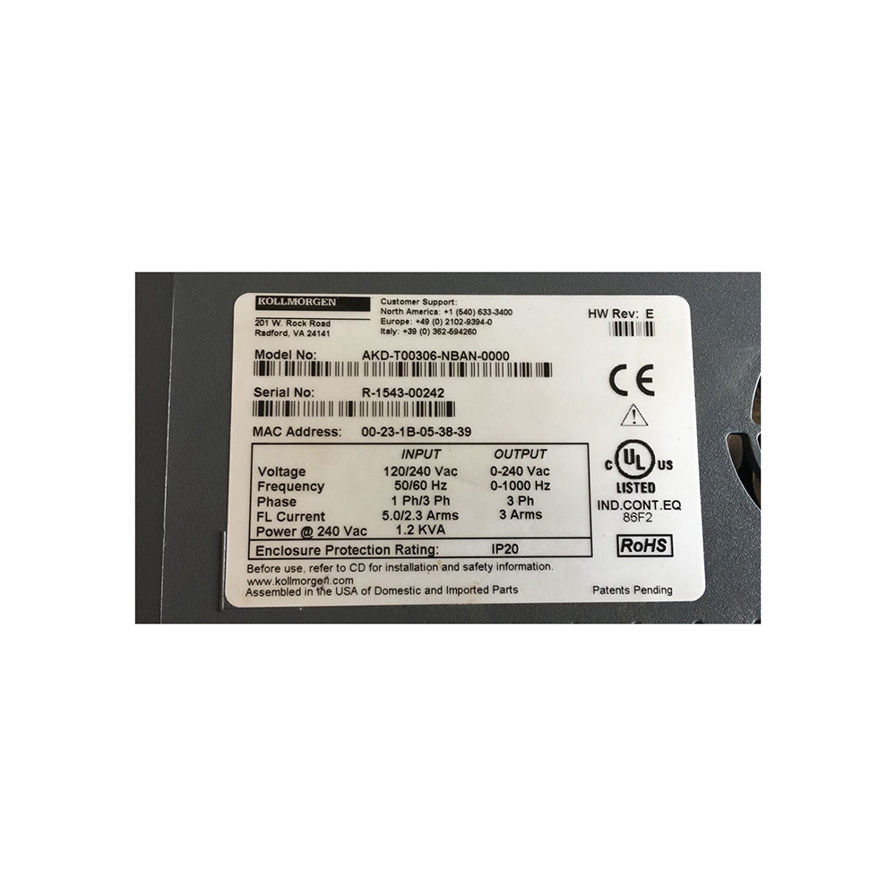KOLLMORGEN SERVO DRIVE AKD-T00306-NBAN-0000