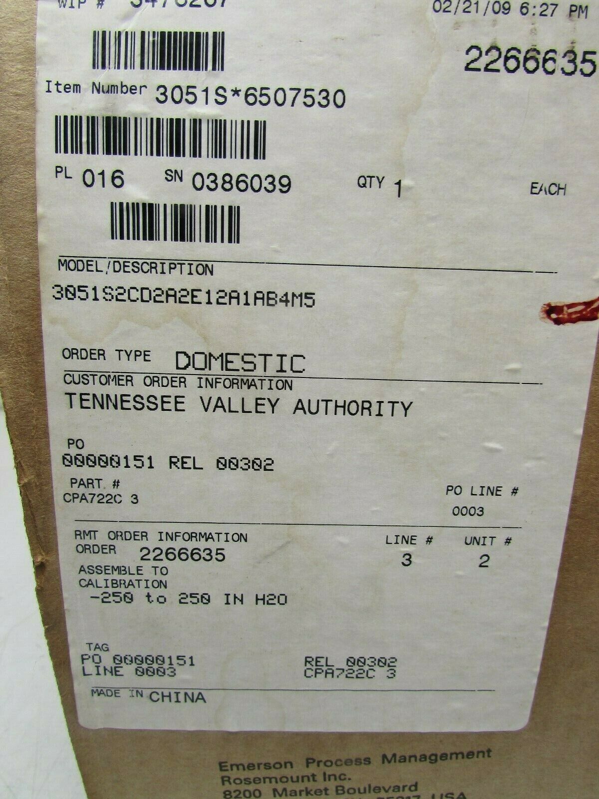 ROSEMOUNT 3051S2CD2A2E12A1AB4M5 ,code: M029 .If you need more pictures, or need more quantity, or have other problems. Please contact E-mail: sales@360dcs.com